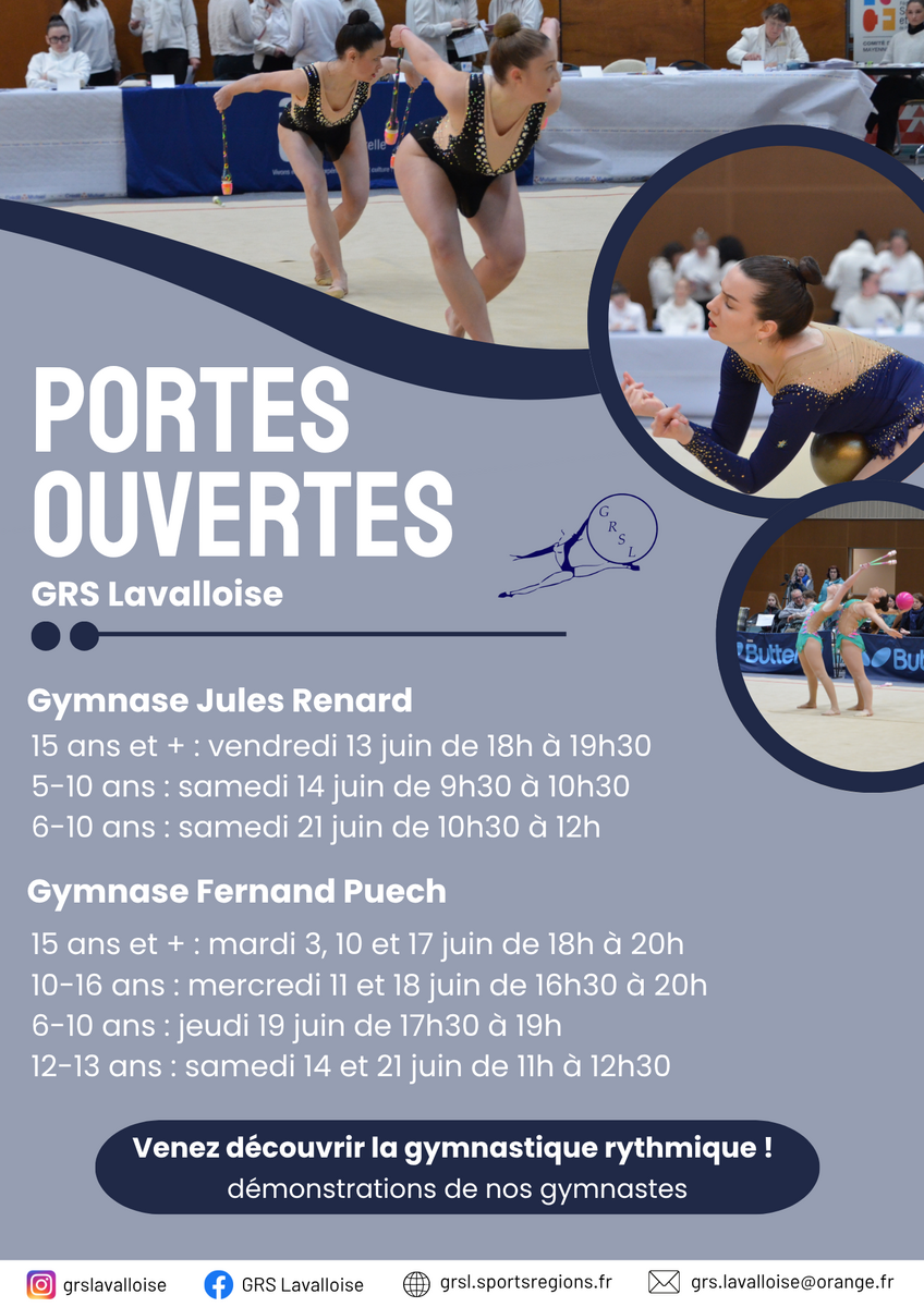 Nous organisons des portes ouvertes tout le mois de juin. C'est l'occasion de pouvoir découvrir la gymnastique rythmique avec notamment des démonstrations de nos gymnastes